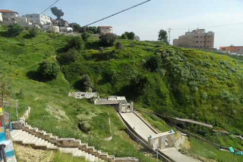 Looking down at the Arizal mikva in the old cemetery of Tzfat from the stone staircase.