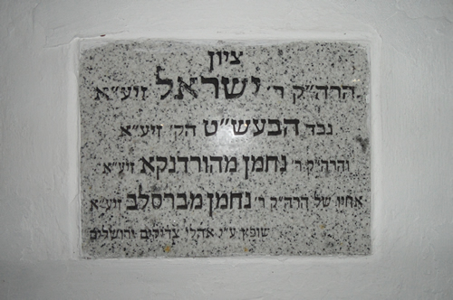 Inscription on the tombstone of Rabbi Yisroel ben Simcha brother of Rebbe Nachman from Breslov. On the tombstone it mentions his ancestors the baal Shem Tov and Rabbi Nachman from Hordanker. Rabbi Yisroel is buried in Mezibush right near the kever of the Baal Shem Tov on the path leading to his Ohel.
